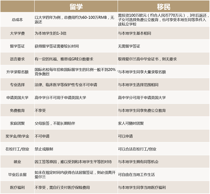 而對于以國際學(xué)生身份在海外接受教育的留學(xué)生來說,可能將會受到一些不公平的待遇。以愛爾蘭為例,選擇直接送孩子前往愛爾蘭留學(xué),和先為孩子規(guī)劃愛爾蘭身份,再到當(dāng)?shù)亟邮芙逃齼煞N方式之間,存在著巨大的差異: