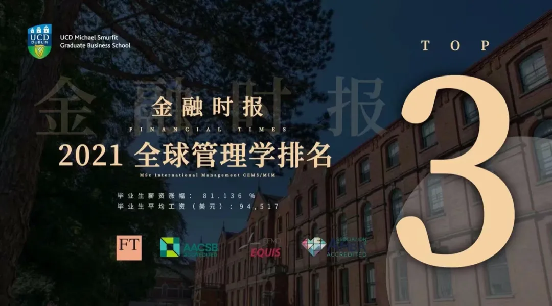 厲害了!愛(ài)爾蘭Smurfit商學(xué)院國(guó)際管理課程排名全球第三!