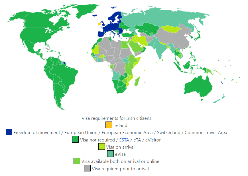愛爾蘭護照=27個歐盟成員國護照+瑞士、列支敦士登、冰島、挪威護照