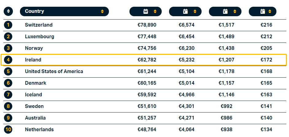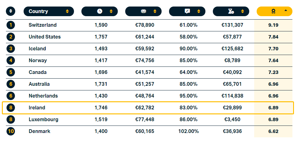 綜上所述,愛爾蘭在工作和創造財富方面擁有無與倫比的優勢,綜合實力在全球發達國家中高居前列!