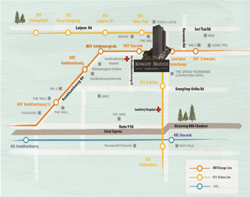 地鐵:距離橙色線Hua Mak站僅100米