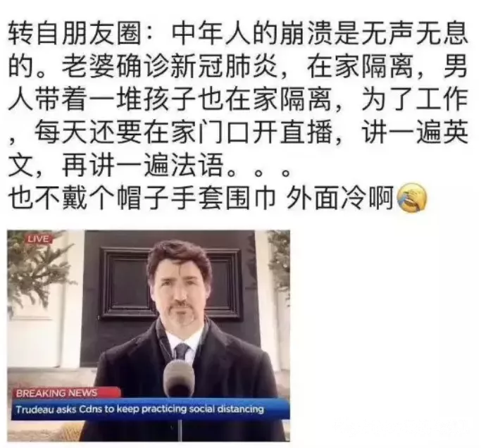 此外,老婆確診,保姆停工,特魯多更是隔離在家單挑三娃,給三個娃準(zhǔn)備日常飲食、分發(fā)玩具、陪同玩耍、洗澡……