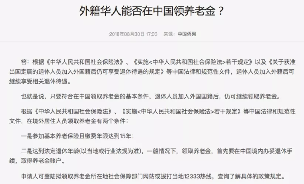 簡而言之,只要自身符合要求,就既能獲得移民國家的福利待遇,又能享受國內(nèi)退休待遇。