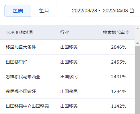 根據(jù)百度最新公布的周數(shù)據(jù),【移居加拿大條件】詞條搜索暴增2846%!【移民美國(guó)條件】詞條搜索暴增2259%!