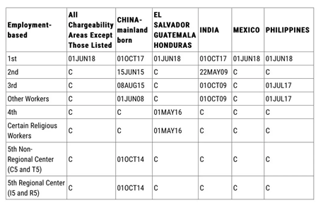 此外,當前熱門的EB-1即將從2018年10月開始正式排期,截止日定格在16年6月,也就是說EB-1正式開始的排期為2年零4個月,辦理EB-1A或L1/EB-1C的家庭也需要開始關注超齡問題。下面來看下具體的簽證排期表。