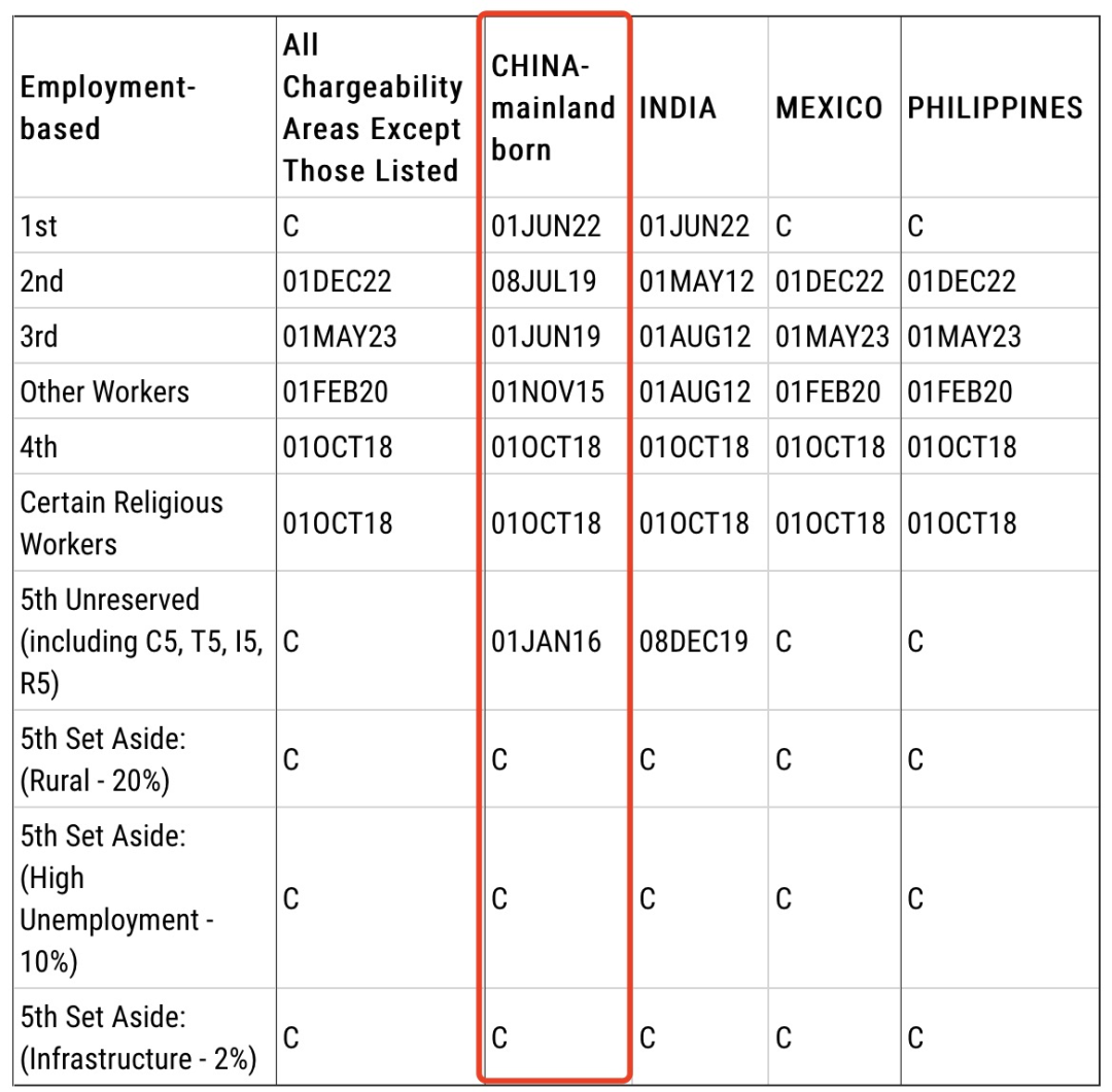 EB-3:排期為2019年4月1日,前進5個月