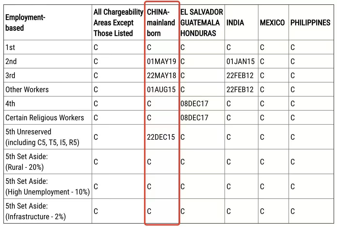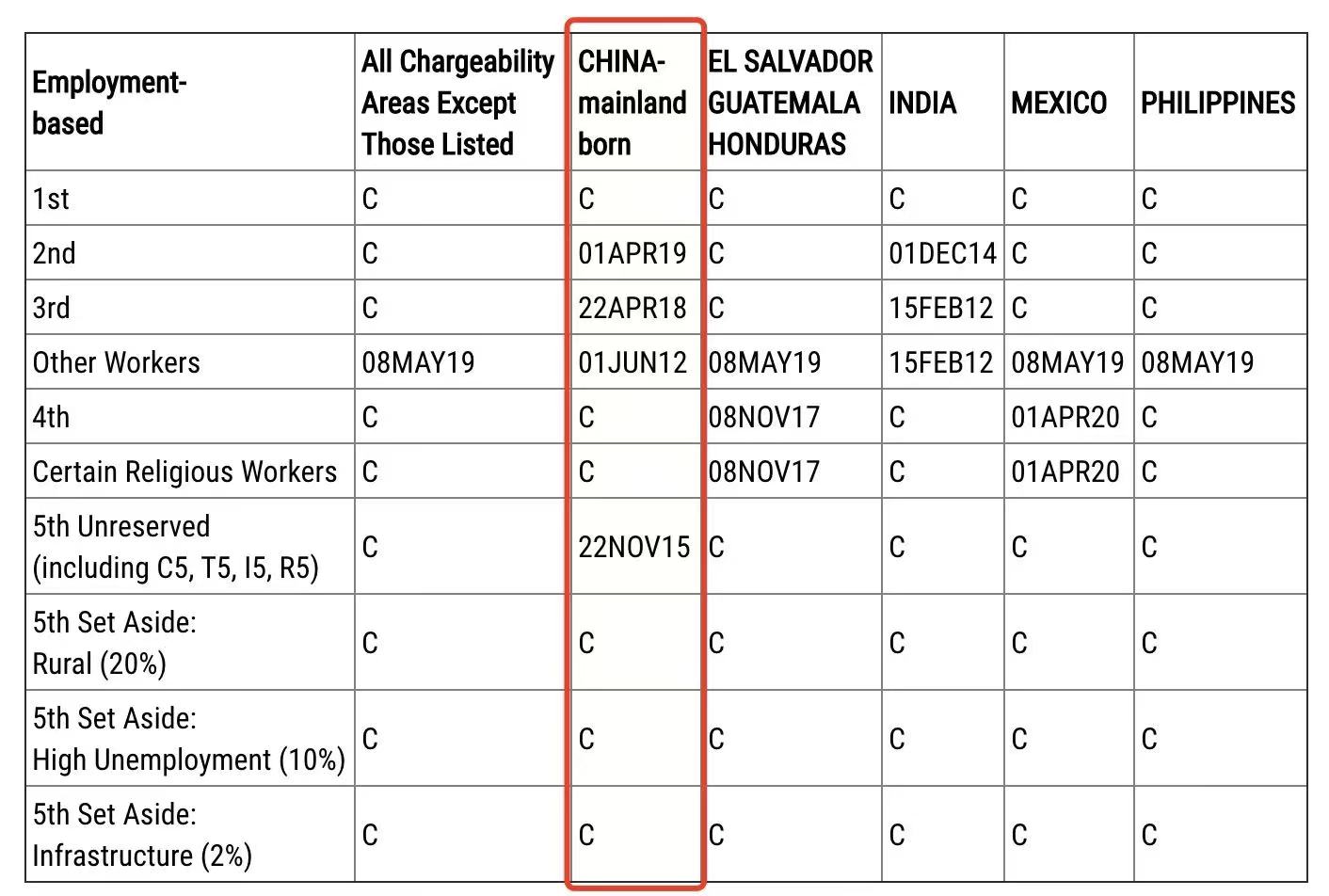 ·EB-5鄉(xiāng)村、高失業(yè)地區(qū)、基建項(xiàng)目因預(yù)留了簽證配額,目前依舊無(wú)排期。