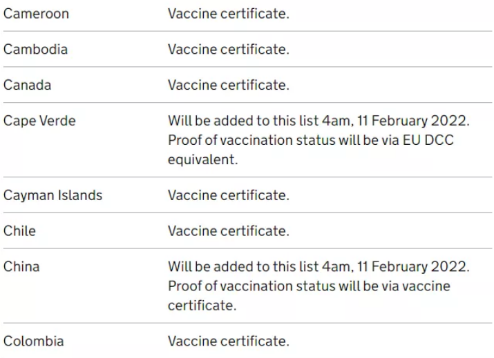 而對于沒有在獲批地區接種英國認證疫苗的旅客,或未完全接種疫苗的旅行者,需要提供: