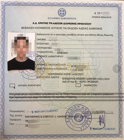 成都貴賓客戶(hù)Z先生一家獲批希臘藍(lán)紙