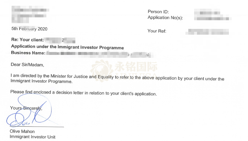 上海貴賓客戶(hù)Z先生一家獲批愛(ài)爾蘭最終批復(fù)函